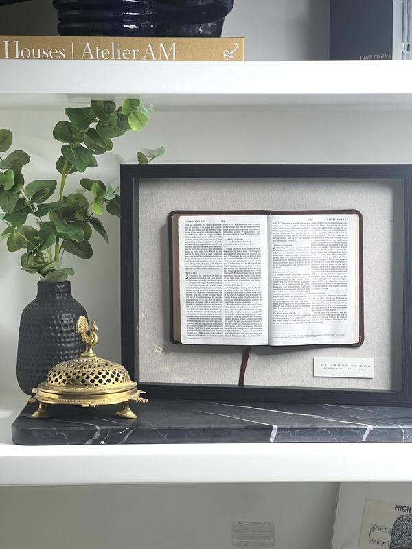 A unique way to display a book! This is such a special way to express your faith by featuring the Bible and your favorite verse on a custom placard. This can be for you or works great as a gift. Birthday, wedding, anniversary, children, new home, grief, etc. This is so heartfelt, sincere and thoughtful and such an amazing addition to either your wall, table or shelf decor.
